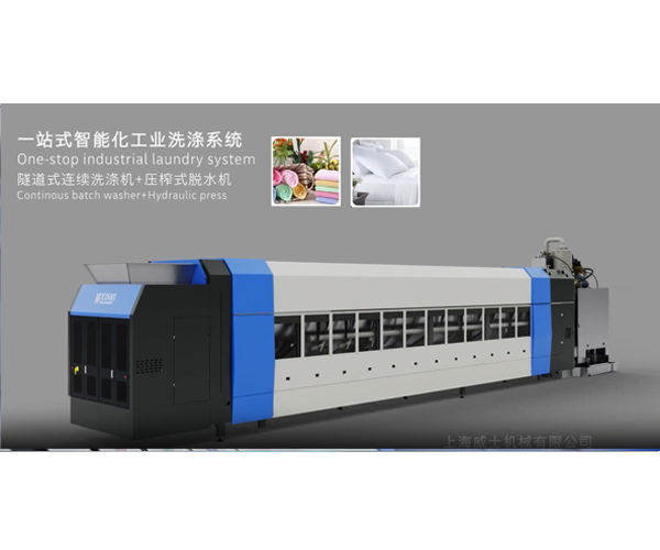 產品介紹:動畫全景展示威士洗滌設備從布草投入、經多道洗滌、高速脫水、精細烘干、到最終后整理展平、熨燙及折疊全流程輸出。凸顯其智能化、高效率的卓越性能。